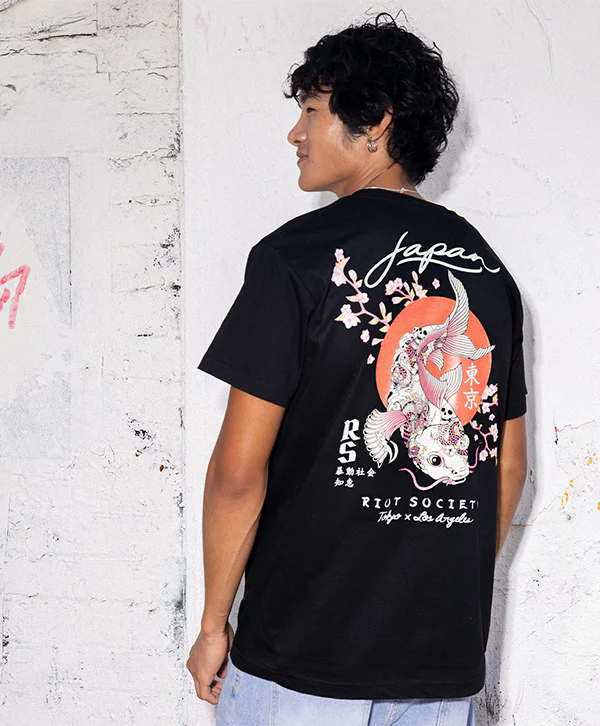 Make a splash with the Riot Society Koi Blossom T-Shirt! This tee blends Japanese-inspired art with bold streetwear style, featuring a vibrant koi fish and cherry blossom design on soft, premium fabric for an effortlessly cool look.